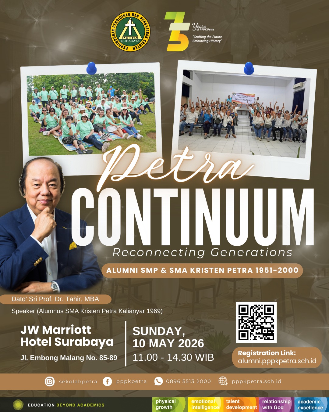 Melalui pendidikan berkelanjutan mulai dari pendidikan anak usia dini hingga pendidikan menengah atas/kejuruan, PPPK Petra terus berusaha memberikan pendidikan yang terbaik kepada putra-putri Anda.