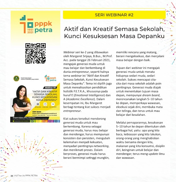 tema webinar ini “Aktif dan Kreatif hidupnya sedari muda, sedari