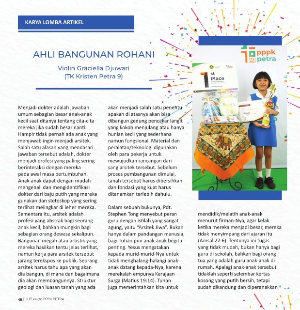 Bangunan megah atau artistik yang bagi Tuhan pun anak-anak begitu (Amsal 22:6). Tentunya ini tugas