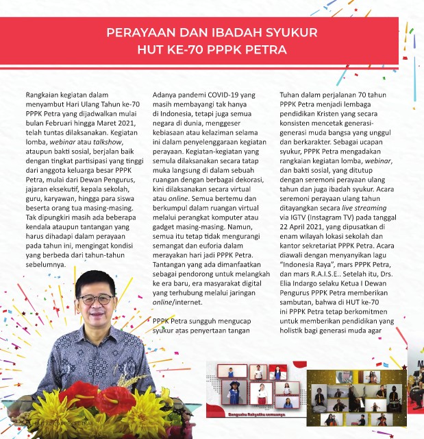 ataupun bakti sosial, berjalan baik perayaan. Kegiatan-kegiatan yang syukur, PPPK Petra mengadakan
