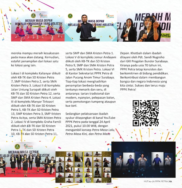 mereka mampu meraih kesuksesan serta SMP dan SMA Kristen Petra 1. Depan. Khotbah dalam ibadah