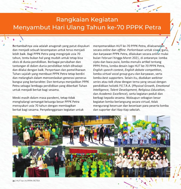 Bertambahnya usia adalah anugerah yang patut disyukuri menyemarakkan HUT ke-70 PPPK Petra, dilaksanakan