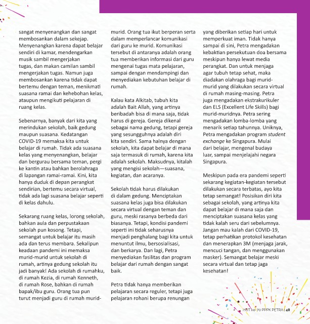 suasana ramai dan kehebohan kelas, di rumah masing-masing. Petra