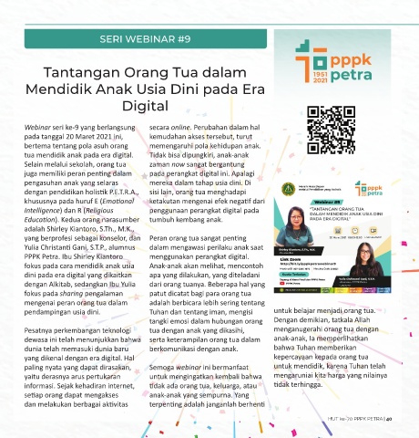 dengan pendidikan holistik P.E.T.R.A., sisi lain, orang tua menghadapi