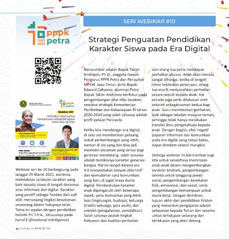 Webinar seri ke-10 berlangsung pada 4.0 menyediakan banyak alternatif karakter kristiani, pengembangan