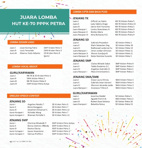 Juara I KB-TK & SD Kristen Petra 5 JENJANG SMA/SMK