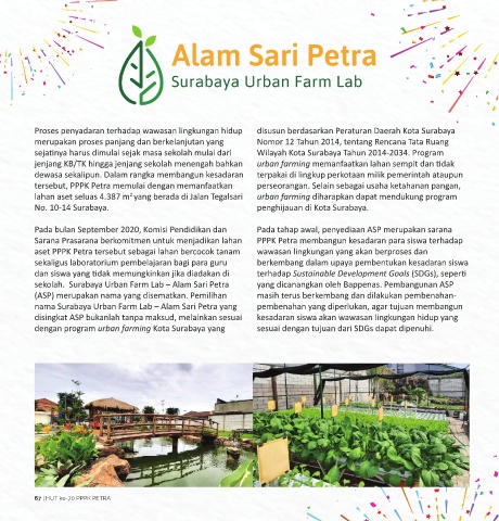 sekolah. Surabaya Urban Farm Lab – Alam Sari Petra yang dicanangkan oleh Bappenas. Pembangunan ASP